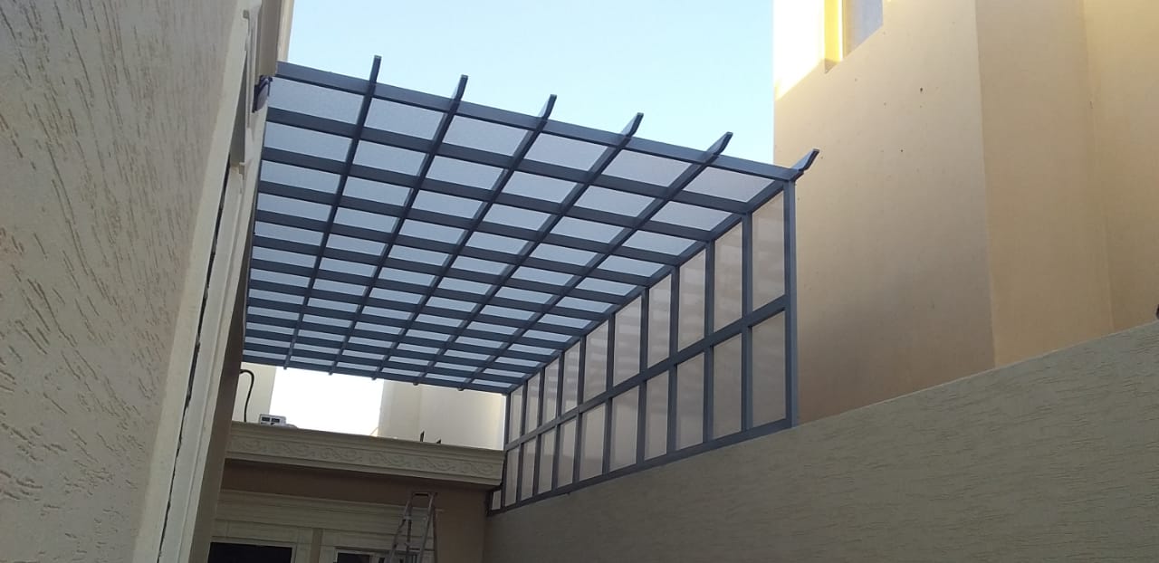مظلات ثابتة مصنوعة من الحديد أو الألومنيوم