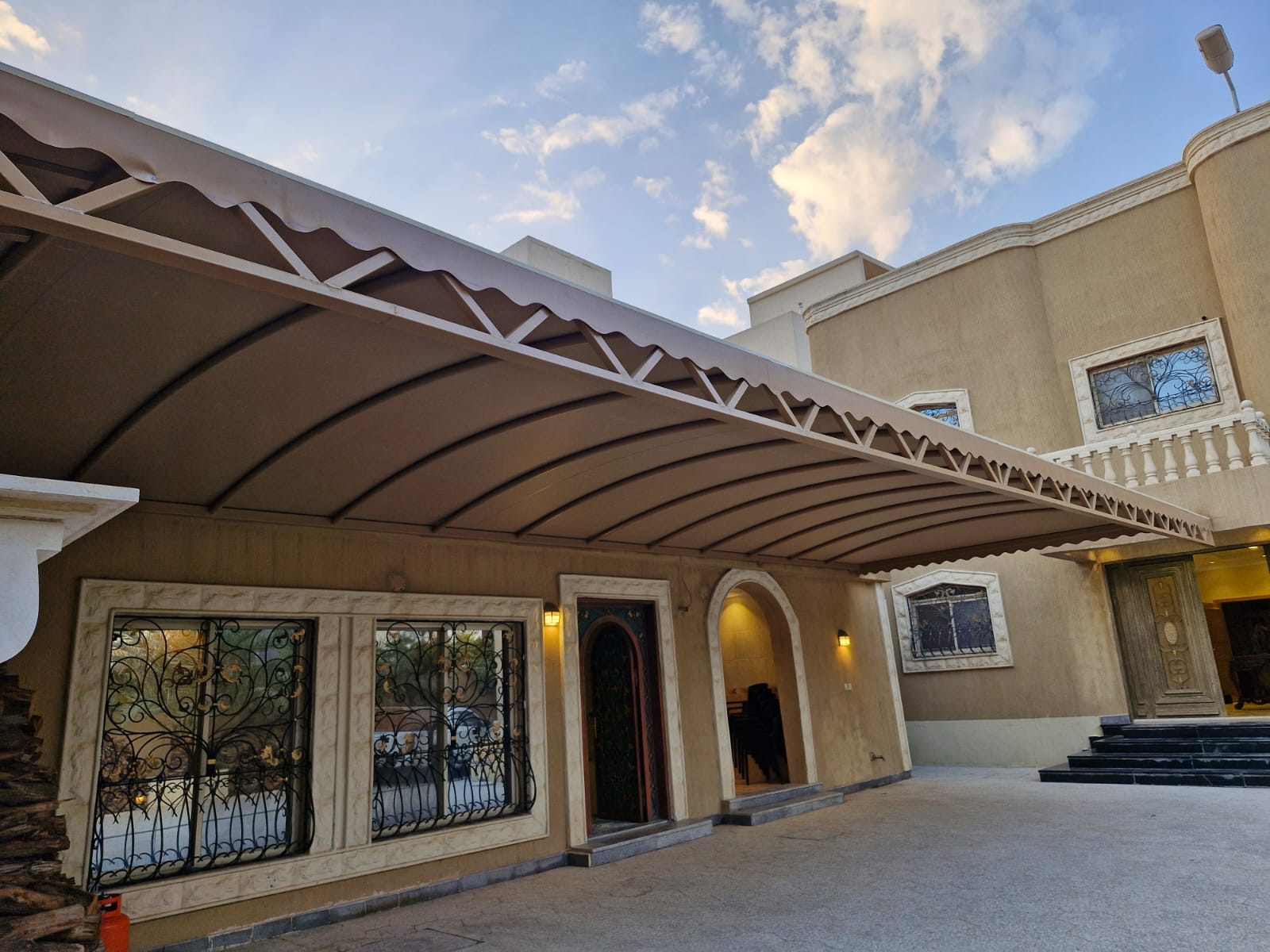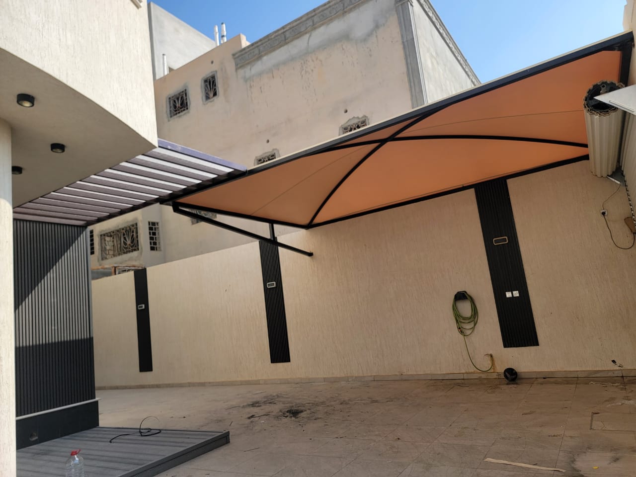 نصمّم المظلات كعنصر جمالي متكامل، يضيف أناقة للمبنى ويعزز فخامته، مع تصاميم عصرية تتناغم مع الفلل، المنشآت، والمشاريع الحديثة في الرياض.