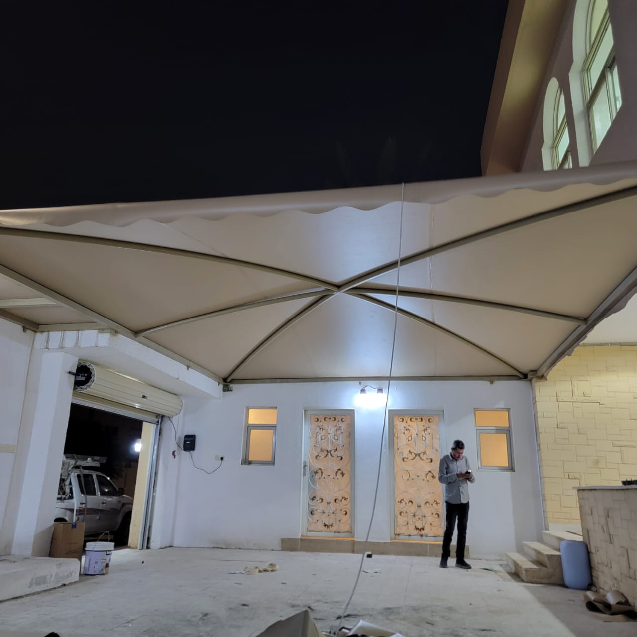 تشمل معاييرنا أيضًا الالتزام بطرق تركيب معتمدة وآمنة، بدءًا من رفع المقاسات، مرورًا بتصميم الهيكل، وحتى التشطيب النهائي. كل مظلة يتم تركيبها تخضع لفحص شامل للتأكد من سلامة الهيكل، جودة اللحامات، وثبات الأساسات وفق المعايير السعودية والدولية.