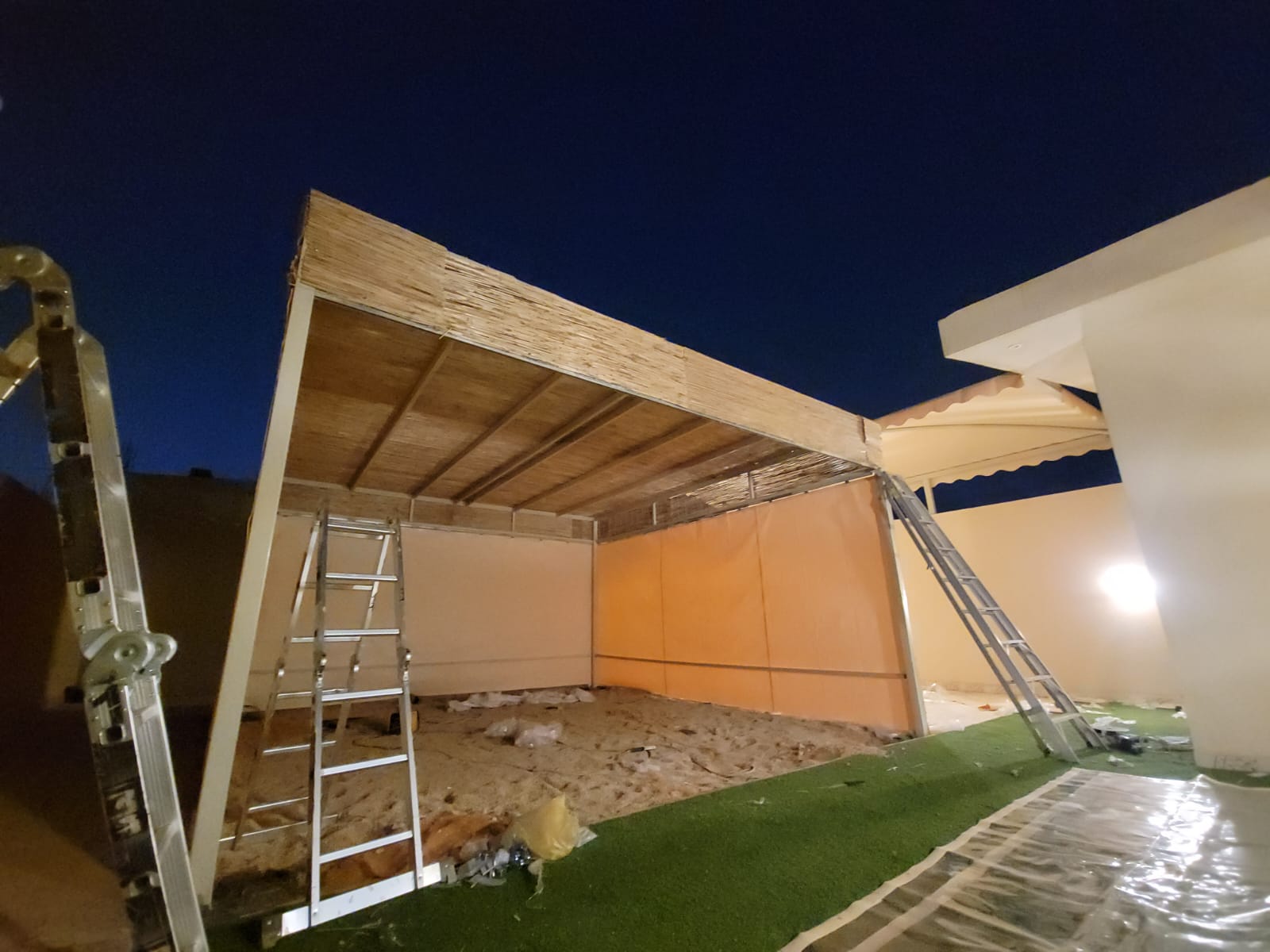 يقوم فريقنا بقياس الموقع بدقة لضمان أن تكون المظلة متناسبة تمامًا مع أبعاد الحدائق، الجلسات المنزلية، أو الاستراحات، دون أي فجوات أو انحرافات.تركيب هيكل متين وداعم: