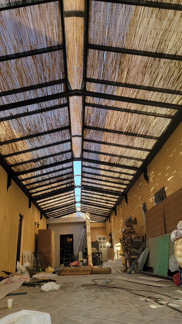نستخدم خامات عالية الجودة في تركيب الأعمدة والدعامات لضمان ثبات المظلة ومقاومتها للرياح والأمطار، مع تعزيز العزل الحراري والتهوية المثالية.تثبيت الألواح والخيزران باحتراف: