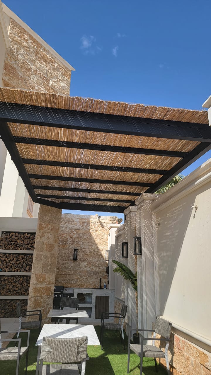 نقوم بتثبيت الألواح والخيزران بعناية فائقة، لضمان مظهر عصري وطبيعي مع حماية كاملة من الشمس والأمطار، دون التأثير على الجمالية أو الوظائف العملية للمظلة.عمر طويل وأداء مستمر: